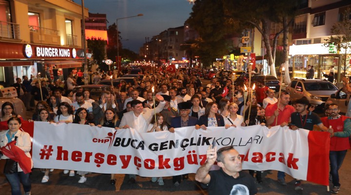 Buca Belediyesi tarafından organize edilen kutlamalar, belediye binası önünden başladı. Belediye önünden Kasaplar Meydanı’na kadar devam eden gençlik yürüyüşüne Buca Belediye Başkanı Av. Erhan Kılıç, CHP Buca Gençlik Kolları ve yüzlerce Bucalı katıldı.  Buca Belediye Bandosu, zeybek ekibi eşliğinde, ellerde meşalelerle gerçekleştirilen yürüyüşte, iptal edilen İstanbul yerel seçimleri ile özdeşleşen  “Her şey çok güzel olacak”, “Mustafa Kemal ‘in Askerleriyiz” sloganları atıldı.