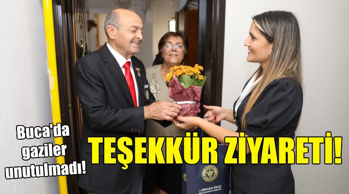 Buca Belediye Başkanı Erhan Kılıç’ın belediye bünyesinde kurduğu Şehit Aileleri ve Gaziler Şefliği tarafından hazırlanan çiçek, plaket ve Türk bayrağı, Buca Belediye Başkanı Erhan Kılıç’ın teşekkür notu ile gazilere ulaştırıldı.