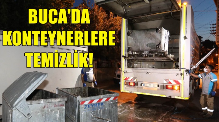 Gün boyu kent temizliği için sokak sokak alın teri döken Buca Belediyesi Temizlik İşleri Müdürlüğü ekipleri, akşam trafiğin rahatlamasıyla birlikte çöp konteynerlerindeki dezenfekte çalışmalarına hız kattı.