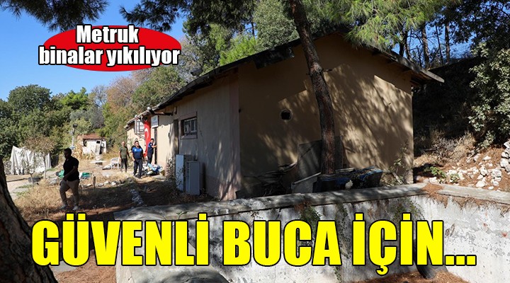 Anayasa’da yer alan “Herkes sağlıklı ve dengeli bir çevrede yaşama hakkına sahiptir” ilkesinden yola çıkarak çalışmalarını sürdüren Buca Belediyesi, ilçede bulunan metruk binalara savaş açtı. Bulunduğu mahallelerde ciddi güvenlik sorunu oluşturan ve zamanla içlerinde biriken atıklar nedeni ile halk sağlığını olumsuz etkileyen binalar, tek tek tespit edilerek yıkılıyor. Buca Belediyesi, vatandaşlardan gelen ihbarları değerlendirerek çalışmalarını gerçekleştiriyor. Yapı Kontrol Müdürlüğü tarafından tespiti yapılan binalar, yasal prosedürlerin tamamlanmasının ardından tek tek yıkılıyor. Fen İşleri Müdürlüğü’nün yaptığı yıkım çalışmasında can güvenliği ön planda tutularak çevreye ve doğaya zarar vermeden yıkımlar gerçekleştiriliyor.