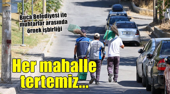 Genel temizlik sistemine göre kendi alanının işlerini çok daha kısa sürede ve verimli bir biçimde gerçekleştiren ekipler de kalan zamanda bir mahalleye toplu biçimde detaylı temizlik yapmaya başladı. Toplamda 80 kişilik ekiple hava koşullarının elverdiği ölçüde her gün 4 mahallede geniş kapsamlı çalışma yürüten Buca Belediyesi, temizlik çalışmalarından ilkini Gaziler, Yaylacık, Yıldız ve Akıncılar mahallelerinde gerçekleştirdi.