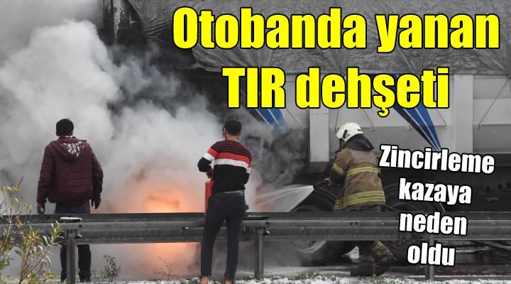 Bornova'dan Buca yönüne giden 16 AHG 297 plakalı TIR' da, sağ arka tekerlerinde dün akşam saatlerinde balatalarının aşırı ısınması üzerine yangın çıktı. TIR şoförü aracını, otoyolun Buca sapağında sağ şeritte durdurdu. Yanan TIR'a arkadan gelen 35 HTN 49 plakalı başka bir kamyon çarptı. 35 TVR 65 plakalı ticari araçta duramayıp, kaza yapan kamyona arkadan çarptı.