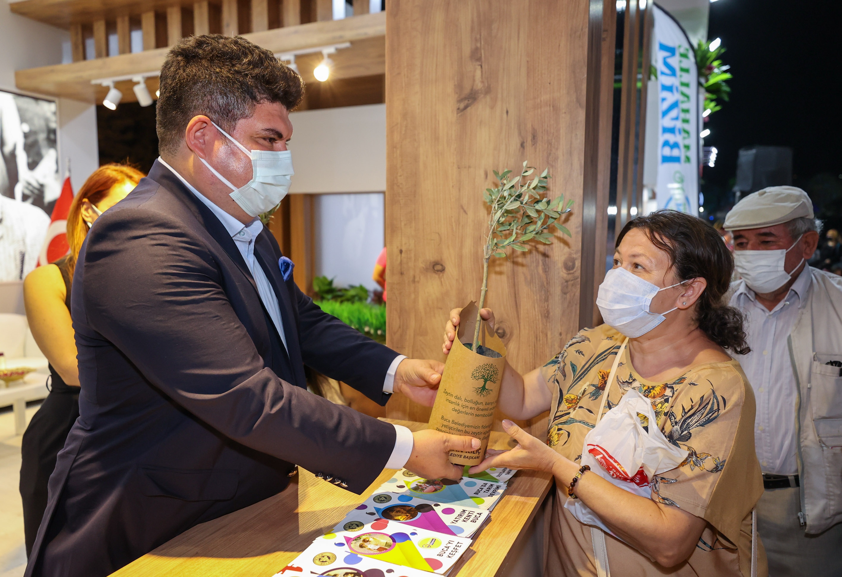 Bir dönem Türkiye’nin en güzel üzümlerinin yetiştiği Buca’da bağcılık kültürünü canlandırmak için 13 dönümlük bağda üretim yapan belediyenin hasadını gerçekleştirdiği üzümleri misafirlerden tam not aldı. Belediyeye ait fidanlıkta yetiştirilen zeytin fidanları da katılımcılara armağan edilirken, ücretsiz dağıtılan zeytinyağı ve zeytin kolonyaları da beğeni topladı. Buca Belediye Başkanı Erhan Kılıç da, stantta vatandaşlar ile bir araya geldi.