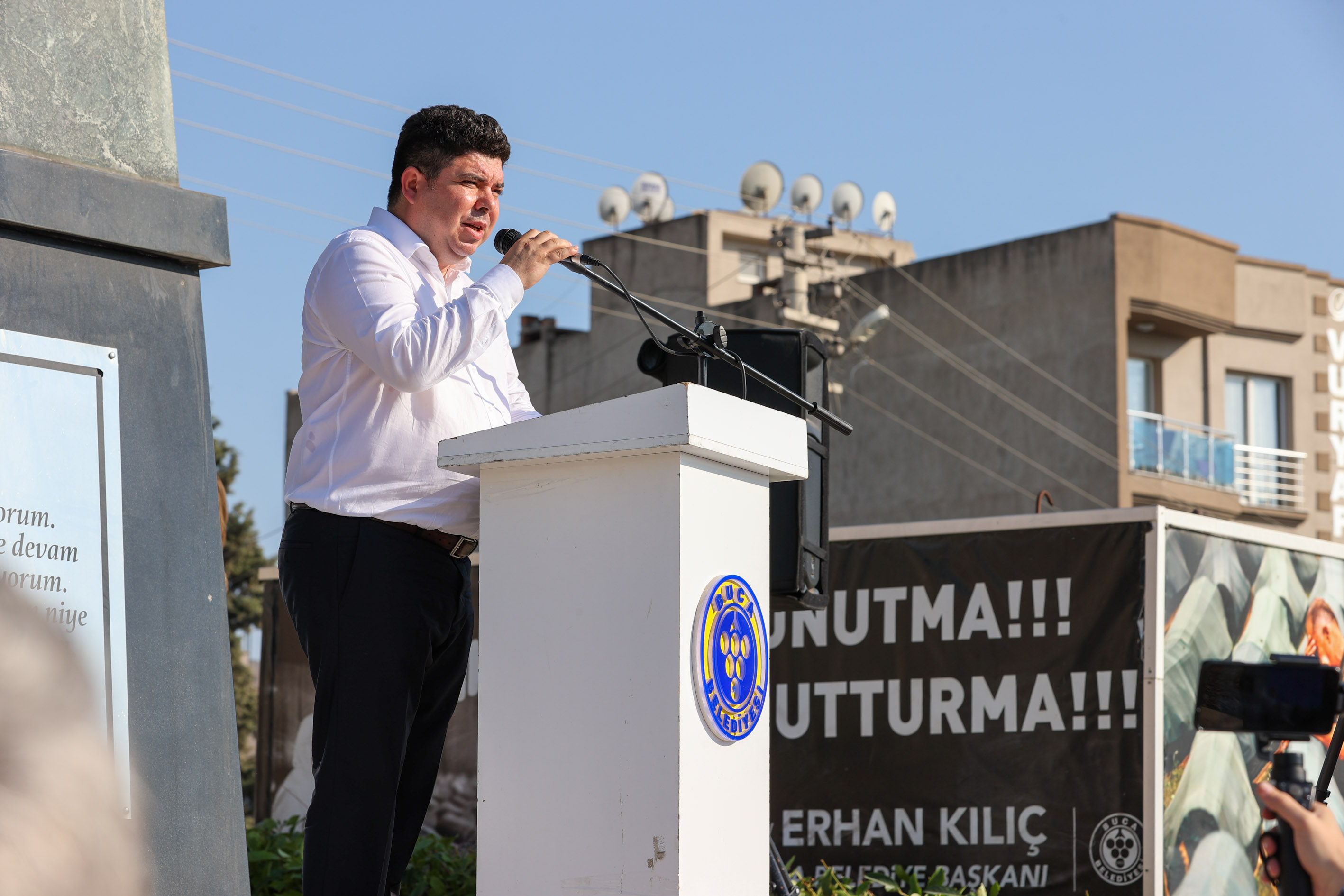 Anmada katılımcılara seslenen Buca Belediye Başkanı Erhan Kılıç, 11 Temmuz 1995’te gerçekleştirilen katliamın acılarının bugün hala sürdüğünü vurguladı. Aradan geçen 27 yıla rağmen bugün hala akıbetleri bilinmeyen, mezarları meçhul, bir mezar taşı dahi olmayan kayıplar olduğuna dikkat çeken Başkan Kılıç, “Sırp güçleri katlettikleri sivillerin kimlikleri tespit edilemesin diye cesetleri parçaladı ve sayısı 64'ü bulan toplu mezarlara gömdü. Hepimizin, bütün dünyanın gözyaşlarıyla izlediği bir dönemdi. 8 bin 372 masum insanın hunharca öldürüldüğü bu soykırım, tarihin kara lekesi, insanlığın en derin yarasıdır” dedi.