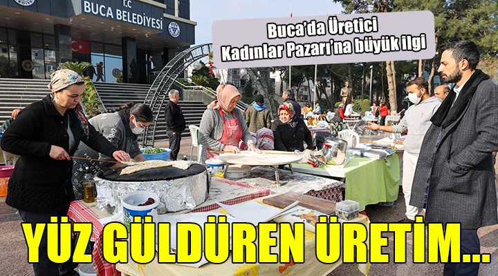 Buca Belediyesi önünde kurulan Üretici Kadınlar Pazarı’nda, belediyenin kursiyerleri ile köyler bölgesinden kadınlar tezgâh açtı. Vatandaşların yoğun ilgi gösterdiği pazarda takıdan dekoratif süslere, gözlemeden sarmaya, zeytinden pekmez ve reçele kadar birçok ürün uygun fiyatla satışa sunuldu.