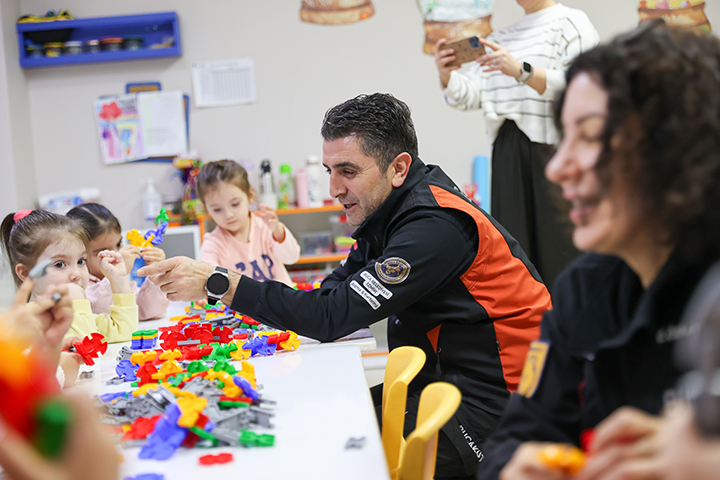 Buca Belediyesi Arama Kurtarma Birimi (BUCAKUT), Çınar Anaokullarında, çocukların dünyasına uygun yaratıcı bir atölye çalışmasıyla afet eğitimi verdi. Minikler, öğretmenleri ve ekipler eşliğinde yapı oyuncaklarıyla güvenli evler inşa etti; sağlam binaların önemini oyunla kavradı. Eğitim kapsamında hazırlanan kısa film gösteriminin ardından deprem tatbikatı yapıldı. Çocuklar, deprem anında uygulanması gereken “çök-kapan-tutun” hareketini ve güvenli tahliye yöntemlerini uygulamalı olarak öğrendi.