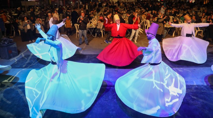 Sanatçı Sabahattin Arslan, akşamın ruhuna uygun ilahileri seslendirirken semazenlerin tasavvuf müziği eşliğinde yaptığı gösteri de büyük beğeni topladı.