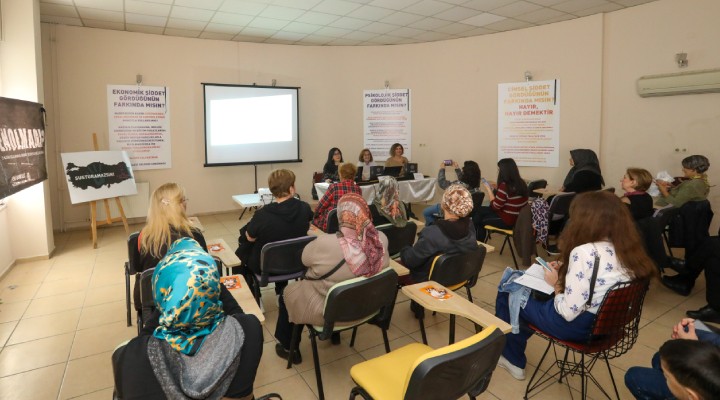 Buca Belediyesi, 25 Kasım Kadına Yönelik Şiddete Karşı Uluslararası Mücadele Günü kapsamında Cinsiyete Dayalı Şiddetin Kaynağı, Nedenleri ve Mücadele Mekanizmaları konulu seminer düzenledi. Kadın Aktivite Merkezi Kız Kardeşlik Salonu’nda düzenlenen seminerde, İzmir Kadın Dayanışma Derneği’nden psikolog Seher Gündoğan ile Kadının İnsan Hakları Eğitim Programı (KİHEP) eğiticileri Gülseren Demir ve Ayla Erdoğan, kadınlara şiddet ve türlerini anlattı.