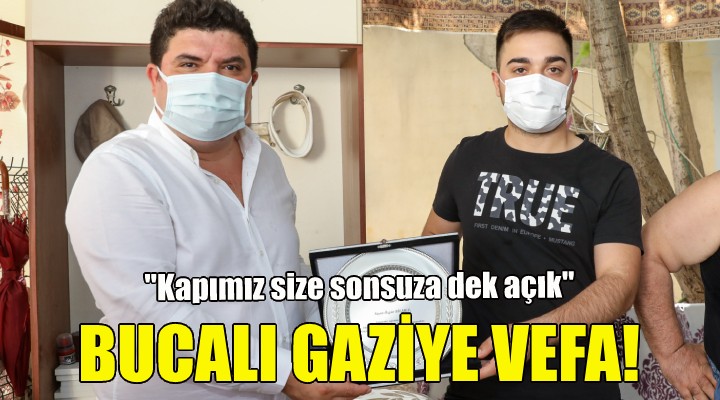 Buca Belediye Başkanı Erhan Kılıç, Gazi Bilmez’i Kuruçeşme Mahallesi’nde ailesiyle birlikte yaşadığı evinde ziyaret etti. Bilmez’e çiçek ve plaket takdim eden Başkan Kılıç, “Özgür kardeşimizin, vatanımız uğruna yaptığı büyük fedakârlık sonsuza dek unutulmayacak. Kendisine ve tüm gazilerimize minnettarız. Hakkınız hiçbir şekilde ödenmez. Buca Belediyesi’nin kapıları size sonuna dek açık” diye konuştu.