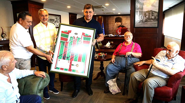 Ahmet Diker ziyaretin sonunda, Başkan Tugay’a Karşıyaka Spor Kulübü’nün 100. yılında çıkan, göğsünde Ulu Önder Mustafa Kemal Atatürk’ün imzası bulunan Kaf Sin Kaf’ın çerçevelenmiş bir formasını armağan etti.