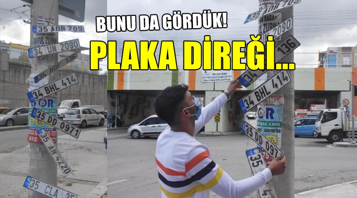 İzmir'de yağmurda düşen plakalar, sahiplerinin alması için elektrik direğine asıldı