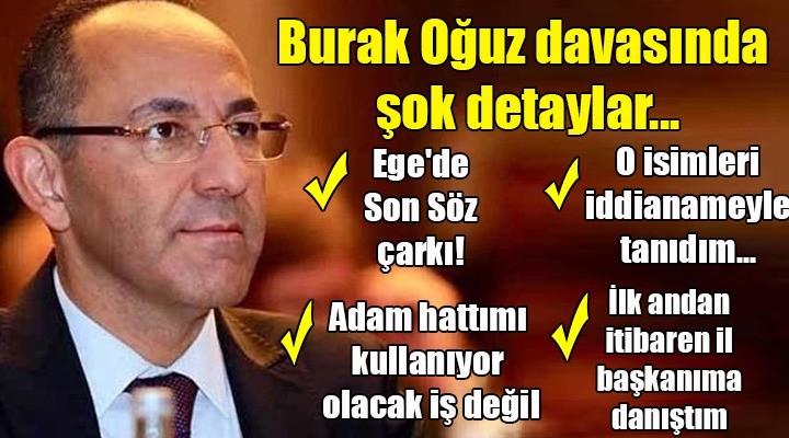 Ö.Ş. ayrıca, "Bir başka belediye adayının ziyareti sırasında Oğuz'un babası Ahmet Oğuz'un, 'Benim oğlum FETÖ'cü. Urla için çok kötü şeyler olacak. Bir şeyler yapın' dediğini öğrendim" ifadelerini kullandı.