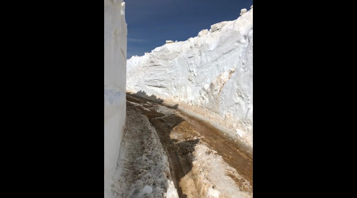 Yer yer 5 ile 10 metre arası değişen kar birikintisi karşısında yoldan geçen vatandaşlar fotoğraf çekmeyi de ihmal etmiyor.