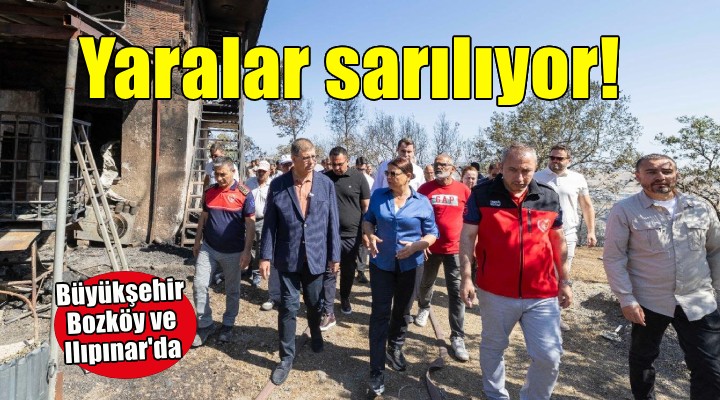 İzmir Büyükşehir Belediyesi, Aliağa Bozköy Mahallesi ve Foça Ilıpınar’da yerleşim yerlerine ulaşan orman yangınının ardından yaraları sarmak için teyakkuza geçti. İzmir Büyükşehir Belediyesi İtfaiye Dairesi Başkanlığı ekipleri, gece boyunca Aliağa Bozköy Mahallesi’nin bulunduğu alandaki orman yangınını kontrol altına alarak soğutma çalışmalarını tamamladı. Soğutma çalışmalarının ardından köylerdeki hasarın bilançosu gün yüzüne çıkarken, İzmir Büyükşehir Belediye Başkanı Dr. Cemil Tugay ve Büyükşehir bürokratları sahada hasar tespit çalışmalarına başladı. Bölgedeki yurttaşlara geçmiş olsun dileklerini ileten Başkan Dr. Cemil Tugay, talepleri dinledi eksiklerin giderilmesi için talimat verdi.