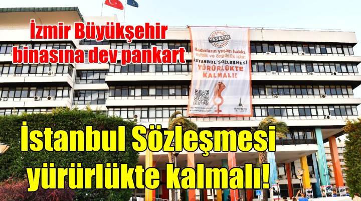 İzmir Büyükşehir Belediyesi, şiddete karşı kadını koruyan İstanbul Sözleşmesi’nin kaldırılması tartışmaları üzerine “Kadınların yaşam hakkı, eşitlik ve özgürlük için İstanbul Sözleşmesi yürürlükte kalmalı” sloganıyla hazırladığı 10 x 15 metre boyutlarındaki karekodlu (QR kodlu) dev pankartı Büyükşehir ana hizmet binasının Saat Kulesi tarafına bakan cephesine astı. Kentteki billboardlara da yerleştirilecek pankarttaki karekod, İstanbul Sözleşmesi’yle ilgili yanıltıcı bilgilere karşı doğruları içeren bir afişe yönlendiriyor.