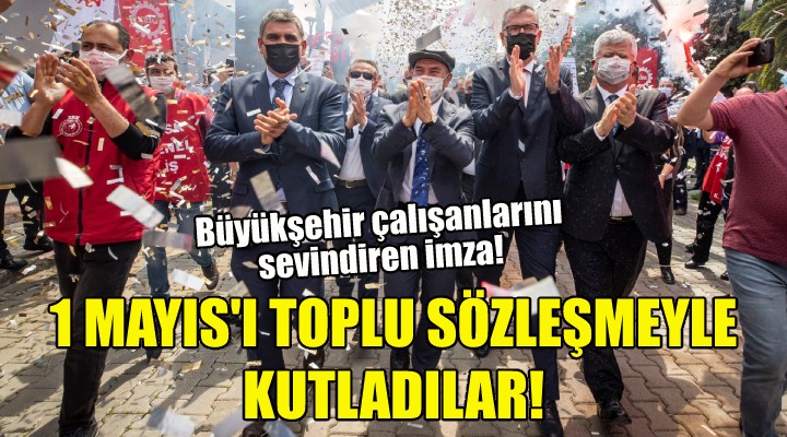 İzmir Büyükşehir Belediyesi şirketi İZELMAN ile DİSK Genel-İş Sendikası arasında uzlaşma ile sonuçlanan toplu iş sözleşmesinin imza töreni, erken 1 Mayıs kutlamasına sahne oldu. 7 bin personeli ilgilendiren ve tüm taban ücretlere yüzde 21 oranında zam öngören sözleşmenin imza töreninde işçiler, Büyükşehir Belediye Başkanı Tunç Soyer’e sevgi gösterilerinde bulundu. Kültürpark'taki imza törenine İzmir Büyükşehir Belediye Başkanı Tunç Soyer, CHP Grup Başkan Vekili Özgür Özel, CHP İzmir Milletvekili Murat Bakan, CHP İzmir Milletvekili Sevda Erdan Kılıç, CHP İzmir Milletvekili Ednan Arslan, CHP PM Üyesi Rıfat Nalbantoğlu ile Devrim Barış Çelik, DİSK Genel-İş Genel Başkanı Remzi Çalışkan, İzmir Büyükşehir Belediye Başkan Vekili Mustafa Özuslu, İzmir Büyükşehir Belediyesi Genel Sekreteri Dr. Buğra Gökçe, Konak Belediye Başkanı Abdül Batur, Dikili Belediye Başkanı Adil Kırgöz, CHP İzmir İl Başkanı Deniz Yücel, CHP Konak İlçe Başkanı Çağrı Gruşçu, sendika başkanları ile temsilcileri katıldı.