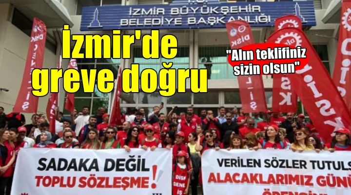 SONKALEİZMİR-İzmir Büyükşehir Belediyesi ile İZELMAN çalışanlarının örgütlü olduğu DİSK/Genel İş Sendikası arasında toplu sözleşmede bugün de anlaşma sağlanamadı. 29 Mayıs'ta greve gidileceğini duyuran Genel İş Sendikası 1 No'lu Şube Başkanı Engin Topal süreçle ilgili şu açıklamayı yaptı: