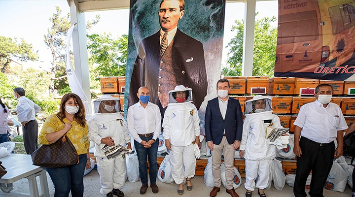 İzmir Büyükşehir Belediyesi Tarımsal Hizmetler Dairesi Başkanlığı’na bağlı Tarımsal Projeler Şube Müdürlüğü tarafından yürütülen Kırsalda Gelir Getirici Faaliyetlerin Desteklenmesi çalışmaları kapsamındaki Bal ve Alternatif Ürünlerin Desteklenmesi Projesi ile kırsal kesimde istihdam alanları büyüyor. Proje kapsamında Bergama’nın Tırmanlar Köyü’nde arıcılık eğitimlerini tamamlayan 67’si kadın, toplam 121 üreticiye kovan ile arıcılık malzemesi seti dağıtıldı. Köy meydanında düzenlen törende konuşan İzmir Büyükşehir Belediye Başkanı Tunç Soyer, 20 Mayıs’ın Dünya Arı Günü olduğunu hatırlatarak konuşmasına başladı. “Arılar yoksa yaşam da yok” felsefesiyle her yıl 20 Mayıs’ın Dünya Arı Günü’nü kutladığını ifade eden Başkan Tunç Soyer, “İzmir Büyükşehir Belediyemi zin bugün yapacağı destek ile Bergama ilçemizde şuana kadar 471’i kadın üreticimiz olmak üzere toplamda 697 üreticimize, 4 bin 66 kovan ve arı malzemeleri dağıtmış olacağız. Belediyemiz, 67’si kadın üreticimiz olmak üzere toplamda 121 üreticimize 464 arılı kovan, 232 arısız kovan hibe ediyor. Tırmanlar Köyü’nde 52, Akçenger'den 7, Pireveliler'den 9, Çürükbağ'dan 14, Çobanlar'dan 13, Ahlatlı'dan 24, İneşir ve Eğrigöl mahallelerinden birer üreticimiz, kovan ve malzeme desteğimizden yararlanıyor” dedi.