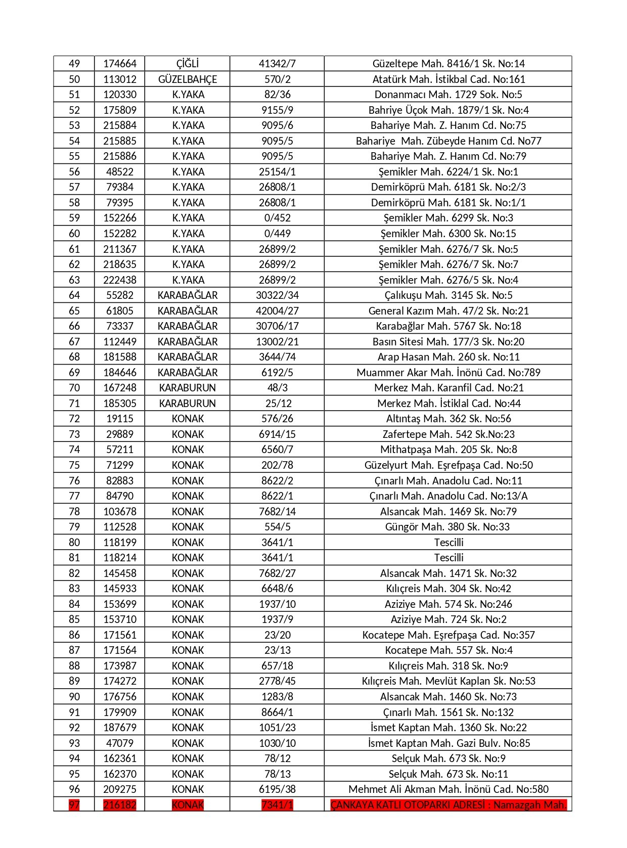 Çankaya Katlı Otopark ve Alışveriş Merkezi binasının yer aldığı taşınmazda belediyemizin hissesi yüzde 46,5 oranındadır. Geriye kalan yüzde 53,5 çoğunluk hissesi Vakıflar Genel Müdürlüğü ve Ziraat Bankası’na aittir. Söz konusu binada yaptırılan inceleme sonrası 07.01.2021 tarihinde tapu siciline “6306 Sayılı Kanun Gereğince Riskli Yapı" şerhi işlenmiş, Çevre, Şehircilik ve İklim Değişikliği İl Müdürlüğü’nün 26.05.2022 tarihli yazısı ile de söz konusu taşınmazdaki riskli yapı tespitinin kesinleştiği bildirilmiştir.