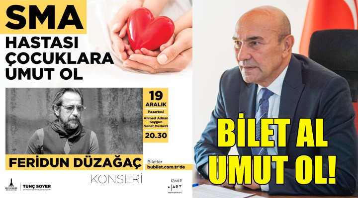 İzmir Büyükşehir Belediyesi kalıtsal kas hastalığı SMA (Spinal Musküler Atrofi) hastalığı konusunda farkındalık yaratmak ve İzmir’de yaşayan SMA hastalarının tedavilerine destek olmak için 19 Aralık’ta saat 20.30’da Ahmed Adnan Saygun Sanat Merkezi’nde Feridun Düzağaç’ın sahne alacağı bir dayanışma konserine ev sahipliği yapıyor. Etkinliğin bilet gelirlerinin İzmir’deki SMA hastalarının tedavisi için bağışlanacağını söyleyen İzmir Büyükşehir Belediye Başkanı Tunç Soyer, “SMA’lı çocukların umudu olan gen tedavisinin maliyeti çok yüksek ve sosyal güvenlik kurumları karşılamıyor. Aileler, valiliklerden izin alarak kampanyalar düzenliyor, tedavi için gerekli parayı toplamaya çalışıyor. Biz dayanışmayı büyütmek ve daha çok kişiye ulaşabilmek için elimizden geleni yapmaya hazırız. Sizler de daha önce zor dönemlerde olduğu gibi dayanışma kültürümüzü bu kez de SMA hastalarımız için yeşertmemize destek olun. Hep birlikte gelin yüzlerce aileye umut olalım. Hala geç kalmadınız. Konsere gitmeseniz bile bilet alarak destek olabilirsiniz” dedi.