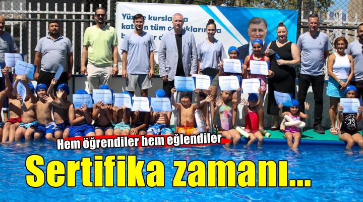 Minik yüzücüler ve yaz spor okullarına katılan çocuklar düzenlenen törenle sertifika ve madalyalarını aldı. Törene katılan İzmir Büyükşehir Belediyesi Gençlik ve Spor Hizmetleri Dairesi Başkanlığı Spor Çalışmaları Şube Müdürü Gürcan Temizel, “Portatif havuz sayımızı gelecek yaz artırarak çok daha fazla çocuğumuza yüzme öğreteceğiz. İzmir Büyükşehir Belediyesi olarak sporu her yaş grubuna ve toplumun tüm kesimlerine ulaştırmayı hedefliyoruz” dedi.