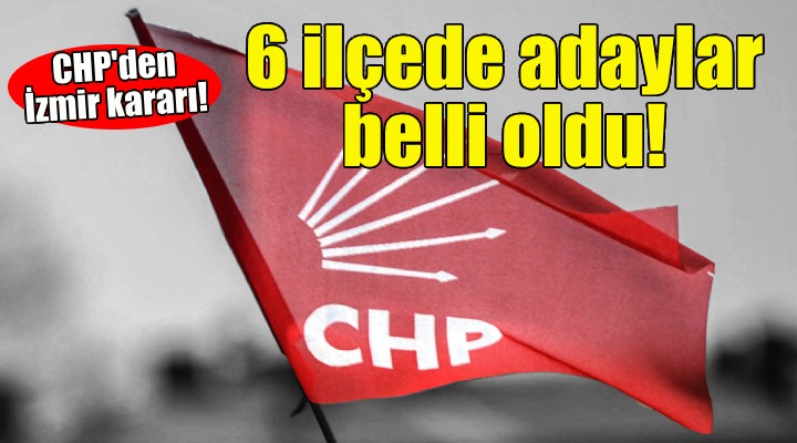 CHP İzmir'in 6 ilçesindeki adayları da belirledi. Bayındır'da Davut Sakarsu, Bergama'da Tanju Çelik, Kınık'ta Sema Bodur, Kiraz'da Nasuh Coşkun, Tire'ede Hayati Okuraoğlu, Torbalı'da ise Övünç Demir aday gösterildi.