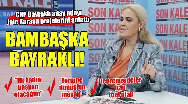 SONKALE TV canlı yayınında gazeteci Mustafa Akbaş'ın sorularını yanıtlayan Bayraklı Belediye Başkan Aday Adayı Jale Karasu, ilçenin ilk kadın başkanı olmak için yola çıktığını belirterek projelerini anlattı.