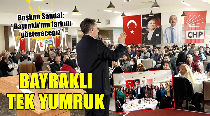 Bayraklı Belediyesi Havuz Tesisleri’nde gerçekleşen buluşmaya, Bayraklı Belediye Başkanı Serdar Sandal’ın yanı sıra, CHP Bayraklı İlçe Başkanı Necati Şahin, Çalışma ve Sosyal Güvenlik eski Bakanı Yaşar Okuyan, kurultay ve il delegeleri, belediye meclis üyeleri, muhtarlar, mahalle temsilcileri ve 500’ün üzerinde partili katıldı. Pazartesi günü Buca Metrosu’nun temel atma töreni için İzmir’e gelecek olan CHP Genel Başkanı Kemal Kılıçdaroğlu’nu en güzel şekilde karşılamak için yapılan hazırlıklar konuşuldu. CHP Bayraklı örgütünün birlik ve beraberlik içinde alanda olacağı, yaklaşık 100 otobüs dolusu partili ve vatandaş ile törene katılım sağlanacağı belirtildi.