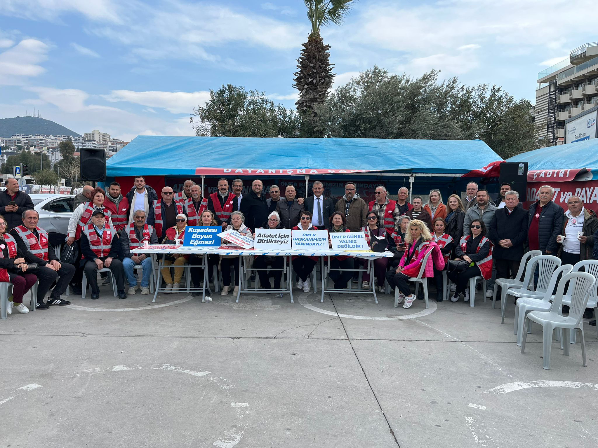Cumhuriyet Halk Partisi (CHP) Bozdoğan İlçe Örgütü, Kuşadası’nda kurulan adalet ve dayanışma çadırını ziyaret ederek Kuşadası Belediye Başkanı Ömer Günel’e destek verdi.