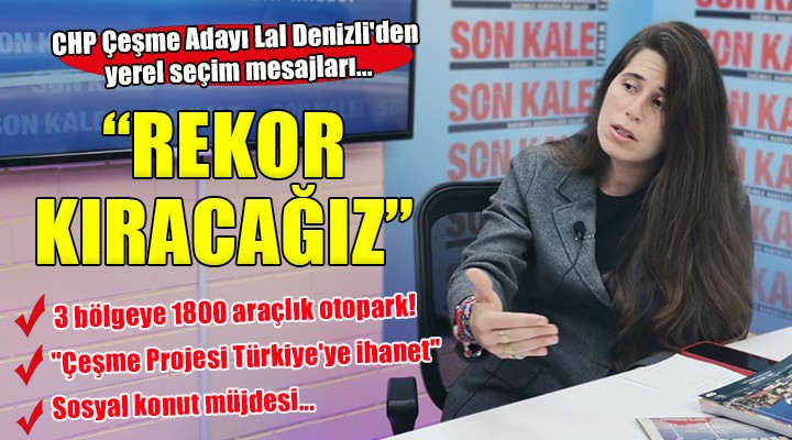 SONKALEİZMİR-CHP Çeşme Belediye Başkan Adayı Lal Denizli, SONKALE TV canlı yayınında gazeteci Mustafa Akbaş'ın konuğu oldu. İlçenin sorunları ve çözüm önerileri ile ilgili dikkat çeken mesajlar veren Denizli, 31 Mart Yerel Seçimleri'nde rekor kıracaklarına inandığını söyledi.