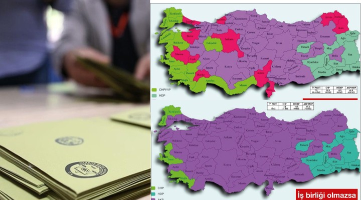 İkinci harita “CHP-İYİ Parti ittifakı yapılarak seçime girilirse ne olur”a yanıt veriyor.