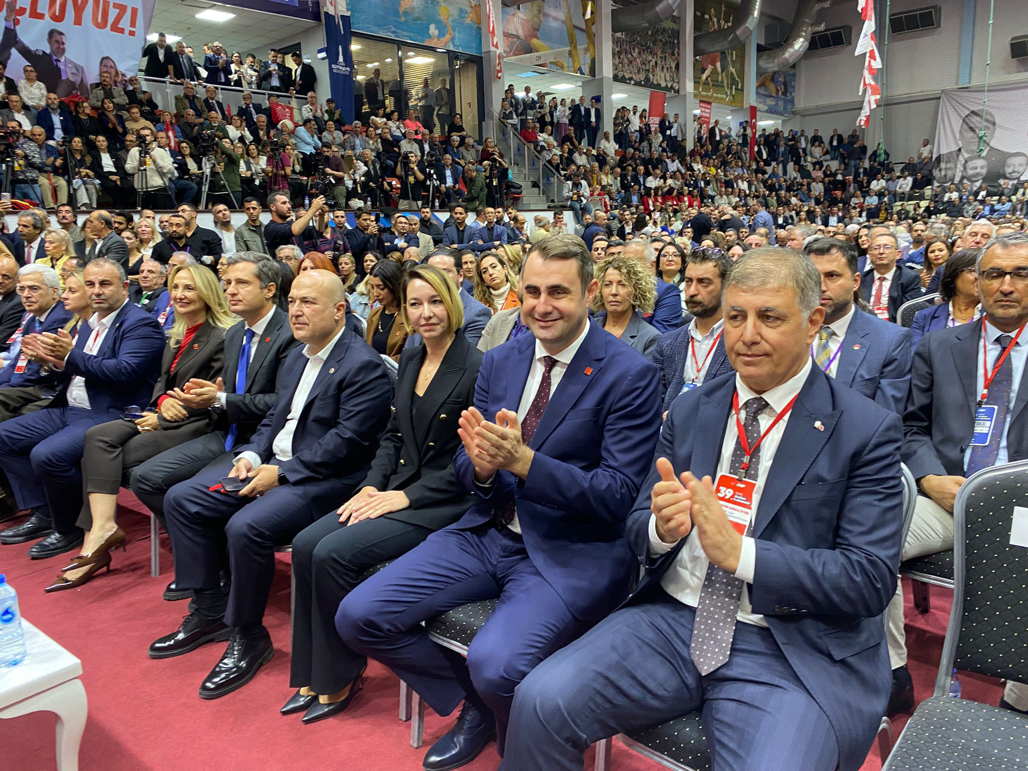 Celil Atik Spor Salonu CHP bayrakları ile donatıldı. Salon girişine CHP Genel Başkanı Özgür Özel, İzmir Büyükşehir Belediye Başkanı Cemil Tugay ve Çağatay Güç'ün el ele fotoğrafının yer aldığı dev bir poster asıldığı görüldü. Salonda Ekrem İmamoğlu'na özgürlük yazılı pankartlar da yer aldı.