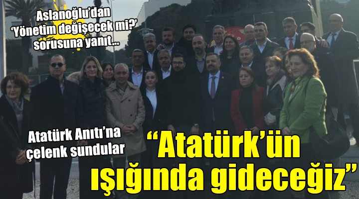 SONKALEİZMİR-CHP İzmir İl Başkanı Şenol Aslanoğlu, CHP İzmir İl Kadın Kolları Başkanı Nurdan Şenkal Uçar ile CHP İzmir Gençlik Kolları Başkanı Burak Kotan, Cumhuriyet Meydanı'ndaki Atatürk Anıtı'na çelenk sundu. Törene CHP İzmir il yöneticileri de katılırken, yeni başkan Aslanoğlu Atatürk'ün ışığında yola devam edeceklerini vurguladı. Aslanoğlu şöyle konuştu: