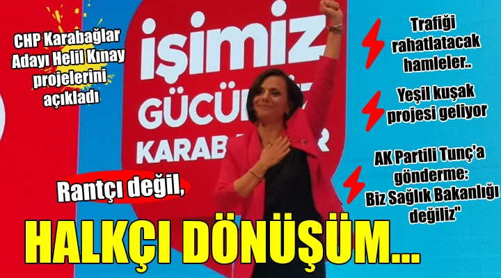 **Çılgın proeler sunmayacağım. Ne yazık ki en büyük sorunumuz açlık, yoksulluk. Birlikte yönetmeyi, demokrasiyi, kentimize sahip çıkmayı amaçlıyoruz. Her sözümüz bir taahhüt. Cumhuriyet Halk Partimizin sosyal demokrat belediyecilik anlayı içinde Atatürk'ün ilke ve devrimleri ışığında imzamızı attığımız çalışmalar. Halkçı belediyecilik beyannamesi ile halktan yana çalışmalar yapacağımız sözümüzdür. Kentsel dönüşümle ilgili Karabağlar'da CHP'nin kendi çalışması olan 2012'den beri Karabağlar mahallelerinde vatandaşlarımızın hakkını savunan, kentsel dönüşümün vatandaşın barınma hakkını sağlayan yerinde, adil sadece binaların değil yaşamın da dönüştüğü bütüncül bir planlama içerisinde yönetim modeli ile oluşturacağı rehberlik ofisleri ile Karabağlar Modeli'ni oluşturacağız.