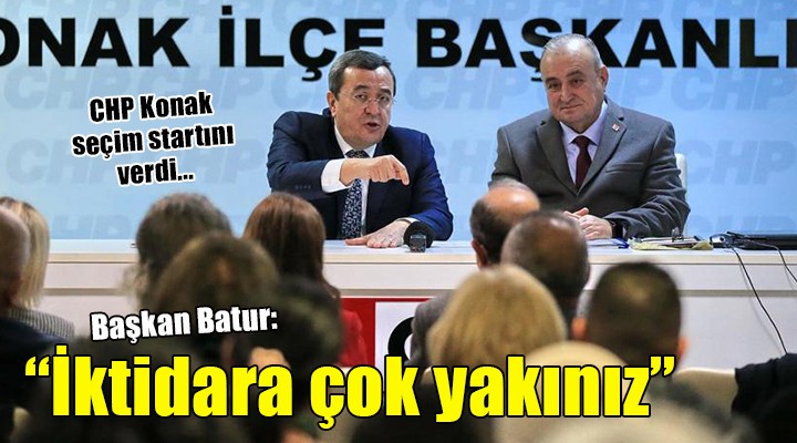 CHP Konak İlçe örgütü seçim öncesi çalışmalarını, CHP Konak ilçe binasında düzenlenen geniş katılımlı bir toplantıyla başlattı. Partililerin seçim sürecinde yapılacak çalışmalarla ilgili görüşlerinin alınarak, yol haritasının belirlendiği toplantıya Konak Belediye Başkanı Abdül Batur, CHP Konak İlçe Başkanı Akın Küçükoğullarından, CHP ilçe örgütleri yöneticileri, kadın ve gençlik kolları başkanları ve üyeleri ile Konak Belediye Meclisi üyeleri katıldı. Başkan Batur, toplantıda yaptığı konuşmada seçime yaklaşık 100 gün kaldığına dikkat çekerek, “Artık çok önemli bir sürece giriyoruz. Yaklaşık 100 gün sonra gerçekleşecek seçimde ana işleri bugün burada olan kadrolar yapacak. Bugün onun için buradayız. Bu yaklaşık üç aylık süre, çok çabuk geçer. Bu işi başaracağız; çünkü başka şansımız yok. Ya karanlığa doğru gideceğiz ya da aydınlığa doğru yönümüzü çevireceğiz. Bizlere çok büyük görevler düşüyor” diye konuştu.