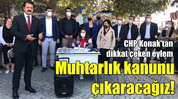İzmir'de aktif bir siyaset ortaya koyan CHP Konak İlçe Başkanlığı, bu kez de muhtarların sorunlarına dikkat çekmek için Kemeraltı girişinde buluştu. Meydanda, muhtarların sorunlarına dikkat çeken kısa bir skeç sahneleyen CHP'liler yurttaşlardan da alkış aldı. Temsili de bir muhtarlık masası kuran CHP'lilere bazı mahalle muhtarları da destek verdi.