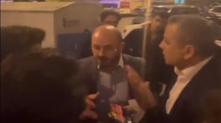 Bu kişi, "İlk Oy Hareketi'nin ilçe temsilcisi" olduğunu savunurken, polisi olay yerine çağıran CHP'liler "Sen TÜGVA'nın Esenler şube başkanısın" diyor. Görüntülerde ise daha sonra beyaz bir arabaya binen kişinin, TÜGVA Esenler kartviziti net bir biçimde görülüyor.
