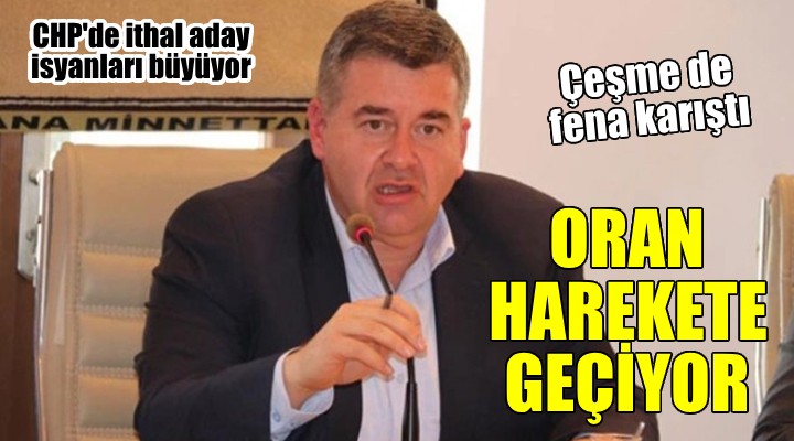 SONKALEİZMİR- CHP'nin İzmir'deki aday belirleme kararlarına tepkiler genişliyor. Lal Denizli'nin Urla'dan dosya almasına karşın CHP MYK ve PM'den Çeşme Belediye Başkan Adayı olarak adının çıkmasına mevcut Belediye Başkanı Ekrem Oran'dan tepki geldi. CHP yönetiminin tekrar aday göstermediği Ekrem Oran'ın yarın (çarşamba) Çeşme meydanında "İthal Aday İstemiyoruz" başlığıyla bir miting düzenleyeceği öğrenildi.