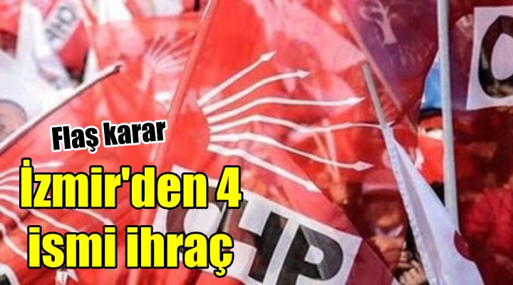 SONKALEİZMİR- CHP'de Yüksek Disiplin Kurulu’nun son toplantısında İzmir’den 4 isim için ihraç kararı çıktı. 4 dönem Menemen'de belediye başkanlığı yapan Tahir Şahin, Selçuk Belediyesi eski Başkanı Vefa Ülgür, Ülgür'ün kardeşi Sefa Ülgür ve oğlu Anıl Ülgür CHP'den ihraç edildi. Tahir Şahin 31 Mart yerel seçimlerinde tekrar aday gösterilmeyince yerine ismi açıklanan Serdar Aksoy'u hedef almış, aleyhinde çalışma yürütmüş, hatta DSP'nin adayı olması gündeme gelmişti.