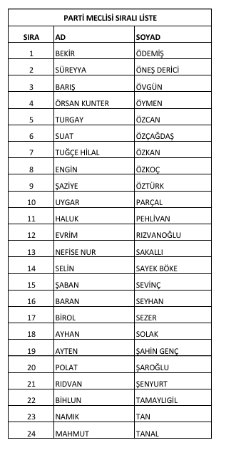 Kurultayın ilk gününde tüzükte yapılan değişiklikle 52 kişiden oluşan PM, 70’e; sekiz kişiden oluşan BKSP ise 10 kişiye çıkarılmıştı. Bu kapsamda Özel bugün 80 kişilik bir anahtar liste oluşturacak. Edinilen bilgiye göre, Özel, 23 kişiden oluşan mevcut MYK üyelerinin tamamını anahtar listesine alacak. Böylece İzmir'den milletvekilleri Deniz Yücel, Murat Bakan, Salih Uzun ve genel başkan yardımcısı Yankı Bağcıoğlu listede yer almış oldu. Adnan Arslan da anahtar listede kendisine yer buldu.