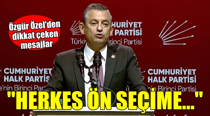 Kurultayın açılış konuşmasını yapan Özel "Yerel seçimleri sokağın sesini duyarak kazandık" mesajı verdi. CHP lideri, genel başkan dahil herkesin ön seçime gireceğini bildirdi.
