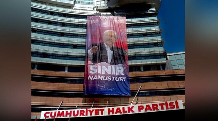 Cumhuriyet Halk Partisi bu sabah Ankara’daki genel merkez binasına Genel Başkan Kemal Kılıçdaroğlu’nun fotoğrafının bulunduğu ‘Sınır Namustur’ yazılı bir afiş astı.