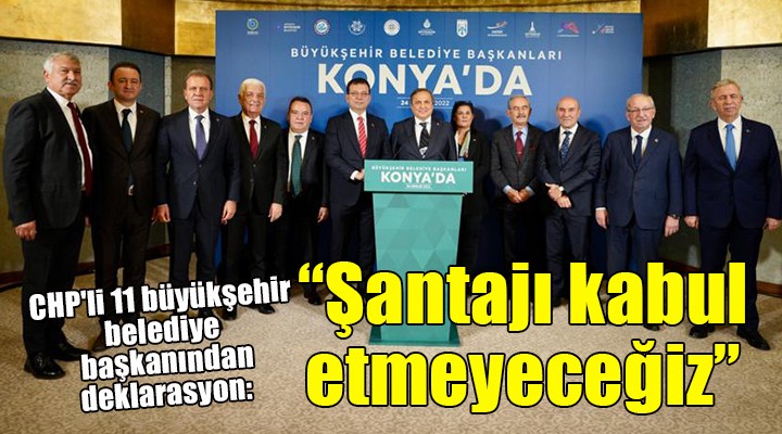 CHP'li 11 Büyükşehir belediye başkanı, yerel yönetimlerden sorumlu CHP Genel Başkan Yardımcısı Seyit Torun öncülüğünde 39'uncu buluşmasını Konya'da gerçekleştirdi. Ana gündem maddesi İBB Başkanı Ekrem İmamoğlu'na verilen 2 yıl 7 ay 15 günlük hapis ve siyasi yasak cezası olan 2 günlük buluşmanın sonunda 11 büyükşehir belediye başkanı ortak deklarasyon yayımladı. Düzenlenen basın toplantısında deklarasyon, CHP Genel Başkan Yardımcısı Seyit Torun tarafından kamuoyu ile paylaşıldı.