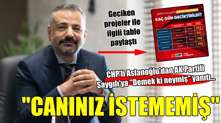 SONKALEİZMİR-CHP İzmir İl Başkanı Şenol Aslanoğlu, İzmir'in projelerinin iktidar tarafından özellikle geciktirildiğine dair sosyal medya hesabından bir tablo paylaştı.