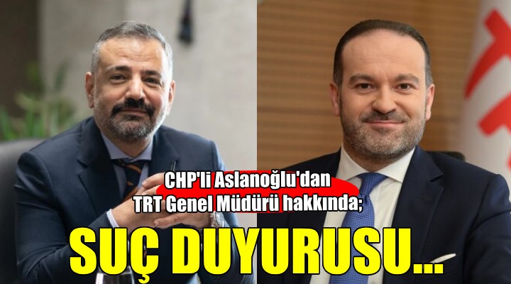 SONKALEİZMİR-CHP İzmir İl Başkanı Şenol Aslanoğlu, il yönetim kurulu ve ilçe başkanlarının da katılımıyla yarın TRT Genel Müdürü Mehmet Zahid Sobacı hakkında suç duyurusunda bulunacak.