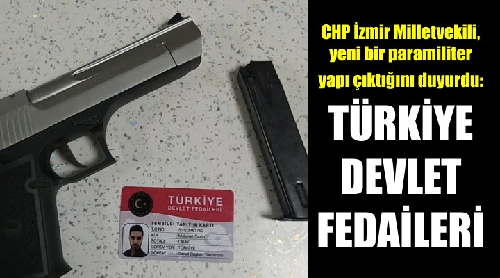 "Türkiye’de paramiliter gruplar var derken boşuna söylemiyoruz. Sadat, Halkın Özel Harekatı, Ak Gençlik Ocakları, Özel Harekat Derneği derken şimdi de Türkiye Devlet Fedaileri denilen yapılanma ortaya çıktı. Bugün Torbalı’da kavga eden iki şahsa müdahale eden polis ekipleri şahıslardan birinde bu kimliği buluyor. Şimdi de kendisine devlet fedaisi diyen, demekle kalmayıp cebinde bu kimliği taşıyan kimliğin üzerinde CB forsu olan insanlarla aynı sokaklarda geziyoruz."