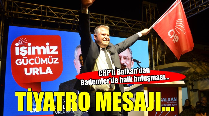 Türkiye’deki ilk köy tiyatrosuna sahip olan Bademler Köyü'ndeki tiyatronun tadilat ve modernizasyona ihtiyacı olduğunu ve bunu da planlamamıza ekleyip ilk 6 ay içinde gerçekleştireceklerini belirten Balkan, Mahmut Türkmenoğlu Parkı’nın atıl durumda olduğunun altını çizerek "Belediye olarak bu alanın tahsisini sağlayıp peyzaj düzenlemesi, aydınlatması, mobesa denetimi ve kafe gibi alt yapı hizmetlerini yaparak sizinlerin hizmetine sunacağız. Bu mobesa denetimleri ile tüm köylerimizin giriş çıkış meydan ve parklarının güvenliği sağlanmış olacak. Ayrıca köy tuvaletlerinin tamamı yenilenecek" dedi.