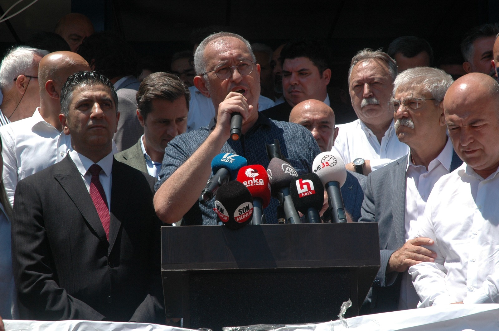 "1990 yılında Dokuz Eylül Üniversitesi Hukuk Fakültesi'ne girdim. 90'dan beri hukuk içinde olan biriyim. Şu an yargıda kim Hak Yol'cu, kim Menzil'ci, kim Nur Cemaati'nin bilmem ne kolundan. Bu konuşuluyor. Yargıyı cemaatlerin arka bahçesi haline getirdiler. Hakimler Savcılar Kurulu diye bir kurul var. 13 üyesi var. 4 üyesini Cumhurbaşkanı atıyor. 7 üyesini de mecliste çoğunluğa dayalı olarak AKP Genel Başkanı olan Cumhurbaşkanı atıyor. O HSK'nın atamasını, terfisini yaptığı savcı işte bu operasyonu yapan. Ona sesleniyorum. Biz buradayız. Biz hayatımızı, ömrümüzü adalete vermiş insanlarız. Biz bu operasyonları FETÖ'den tanıyoruz. FETÖ ile iltisaklı 750 milyon dolara dinozor parkı yaptıran başkanları görevden el çektirdiniz. Hiçbir soruşturma başlatmadınız. Kamu kaynaklarını yandaşlarına aktaran, geçmediğimiz otoyollara, uçmadığımız havalimanlarına para ödettiren, dünyanın en çok ihale alan 5 şirketini rekorlar kitabına sokan iktidar utanmadan Menderes Belediyesi'ne operasyon yapıyor. Bu yargı operasyonu değil, siyasi operasyondur. Bir belediye başkanı, 8 ay süren soruşturma sürecinde görevinde kalacak. Çağırıldığında ifade verecek. O başkanı gözaltına alacaksınız. Sabaha kadar ifade versin diye bekleteceksiniz. Sabah getireceksiniz. Çağırdığınızda gelen belediye başkanı. Bu hukuksuzluk değil, terbiyesizliktir. Sonra adli kontrolle bırakacaksınız çünkü elinizde bir şey yok. Arkasından bunu bahane edip görevden uzaklaştıracaksınız. Hiçbir şeye sessiz kalmadık, buna da kalmayacağız. Devletin dini adalettir. Adaletle yönetilmeyen devlet yıkılmaya mahkumdur. 8 ay önce gelip bu operasyonu yapan cumhuriyet savcısına sesleniyorum. Bu işin arkasında kimler var biliyoruz. Sizi takip ediyoruz. Hukuk çerçevesinde davranmak zorundasınız. İşişleri, suçişleri bakanı Süleyman Soylu'ya sesleniyorum. Senin kimlerle, hangi suç örgütleriyle ilişkin olduğunu Türkiye biliyor. Türkiye'de suçla mücadele edip suçlularla fotoğraf veren tek içişleri bakanısın. Senden de hesap soracağız. Adliye koridorlarına gözaltına alınarak, mevcutlu getirilerek yargılanacaksın suçişleri bakanı."
