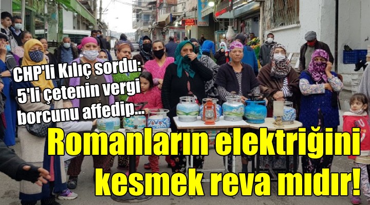 Kılıç, Enerji ve Tabii Kaynaklar Bakanı Fatih Dönmez’in yanıtlaması istemiyle verdiği soru önergesiyle “İzmir’in Tepecik Mahallesi’nde yaşayan Romanların elektrik sorununu” Meclis gündemine getirdi. Elektrik faturasını ödeyemeyen Romanların elektriklerinin polis eşliğinde kesildiğini, duruma tepki gösteren Romanların, olayı gaz lambaları ve tüplerle protesto ettiğini belirten Kılıç, şunları söyledi: