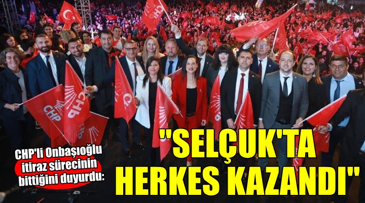 SONKALEİZMİR-CHP Selçuk İlçe Başkanı İpek Onbaşıoğlu, Filiz Ceritoğlu Sengel'in kazandığı yerel seçim sonrası itiraz süreçlerinin tamamlandığını duyurdu. Yazılı bir açıklama yapan Onbaşıoğlu, eşit hizmet vurgusu yaparken, "Selçuk'ta herkes kazandı, demokrasi kazandı" dedi.